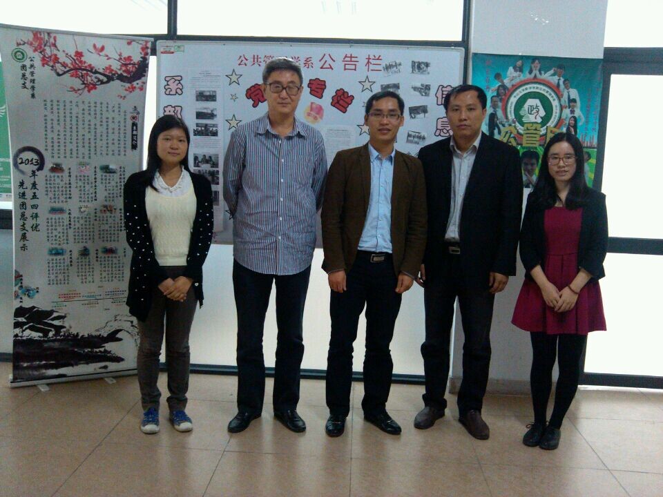 东莞理工学院城市学院公共管理教研室自2004年开始招收行政管理专业,设置了社会工作专业,该院生源主要来自东莞地区。此次韦朝毅主任一行意在了解我系专业设置及人才培养等情况。在座谈中,王光辉副教授向两位来宾介绍了我系行政管理和公共关系学两个专业的基本情况,以及正在申请的人力资源管理专业,并就此向两位老师询问了社会工作专业的相关情况。随即,双方就人才培养方案设置、实践教学、学生就业以及教师科研等情况进行了比较全面的交流。