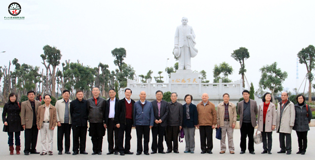 图5 我院领导与来访客人在中山像前合影留念