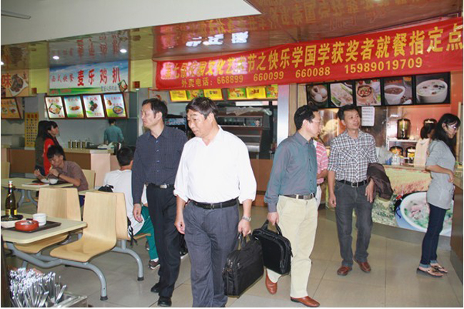 图2 我院领导陪同来访客人参观学生第三食堂