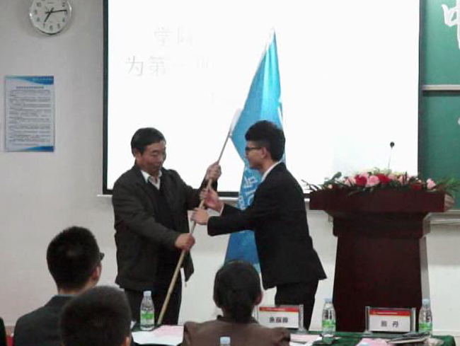 在师生热烈的掌声中,刘美南书记为第一期“青马100”学生骨干培训班授旗,并宣布第一期“青马100”正式开班!