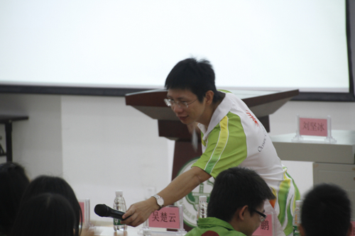 次日上午,中华龙舟赛志愿者培训大会在教学楼①F203继续召开,东莞市绿羊羊志愿服务总队队长刘坚冰向现场的志愿者分享了他这些年当志愿者的经历,并以自身为例子向大家诠释了志愿者的深层含义。他鼓励大家积极投身于志愿服务工作,把志愿精神传递下去,他表示,只有学好了志愿服务知识,才能更好地服务大众。