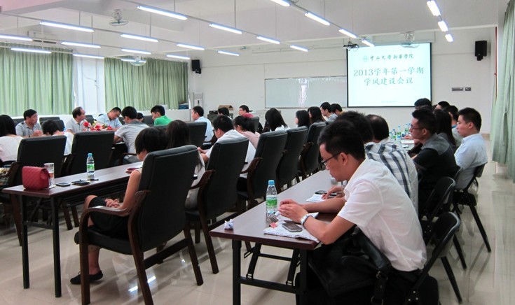 9月29日上午,我院党委书记刘美南研究员在东莞校区实验楼①A403会议室主持召开2013学年第一学期学风建设会议,学院党委副书记、副院长蓝永金和副院长李中生教授,以及东莞校区党政办、教学科研工作办、学生工作综合办负责人和全体辅导员老师与会。