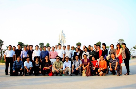 图4 我院领导与民进调研组专家们在孙中山塑像前合影留念