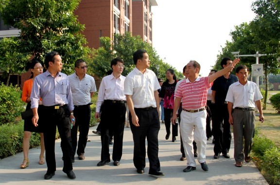 图2 朱默河副秘书长(右二)一行参观郁郁葱葱的美丽校园