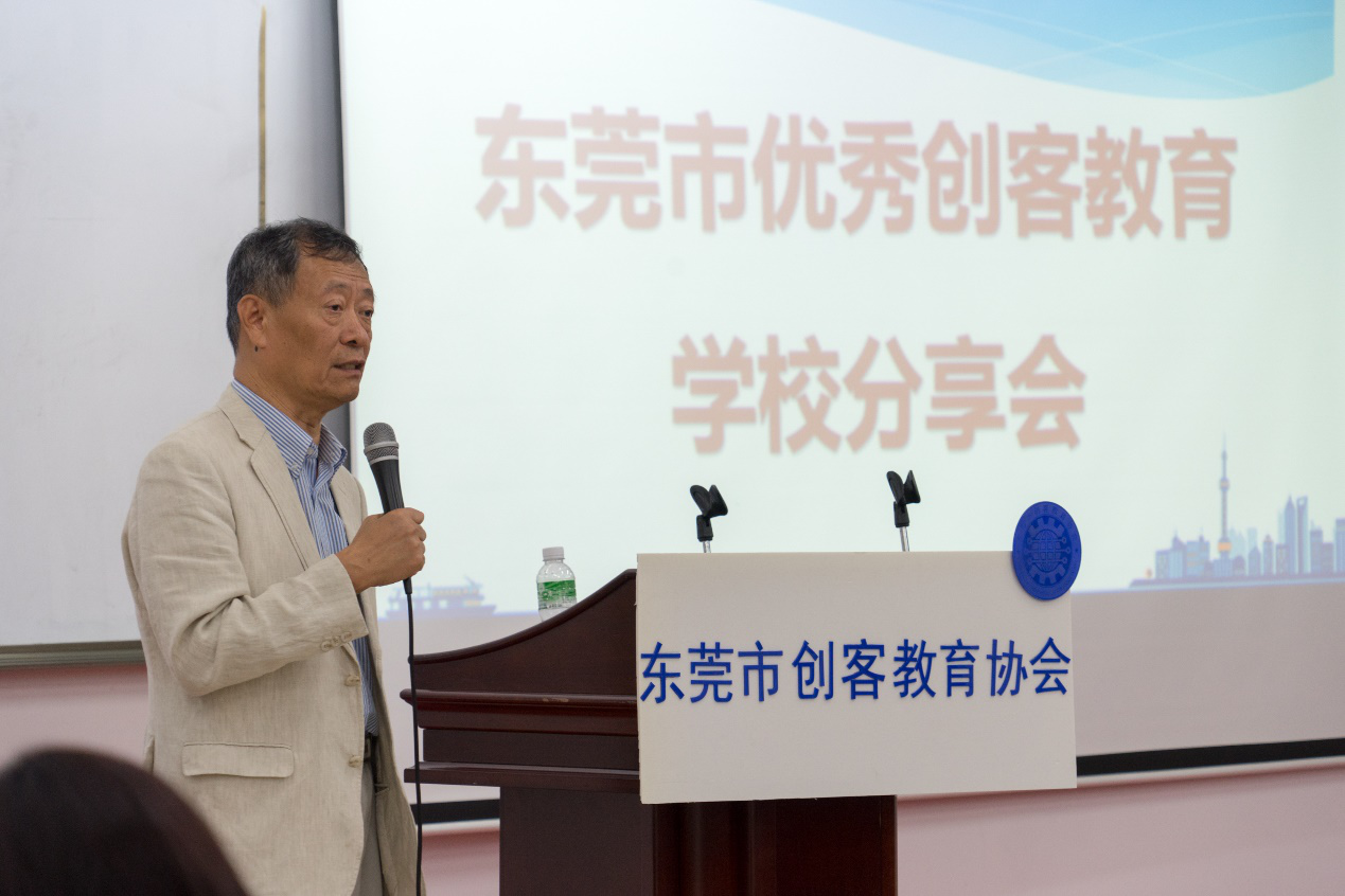 学院Fab Lab创新中心执行主任胡铁君、东莞中学初中部古梅一中副校长邓文勇、东莞市麻涌镇大步实验小学主任张臻宋代表东莞市优秀创客教育学校作分享报告,与各单位创客教育代表们共同探讨创客教育理念,分享创客教育方法,共谋创客教育发展的新路径。