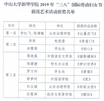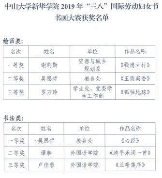 学院2019年“三八”国际劳动妇女节系列活动获奖名单
