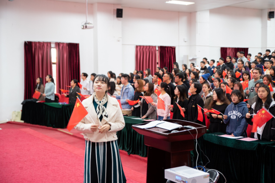 党委宣传部副部长(主持工作)刘英同志主持活动并领唱《我和我的祖国》