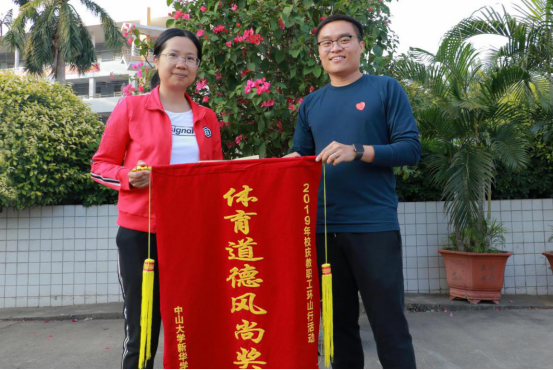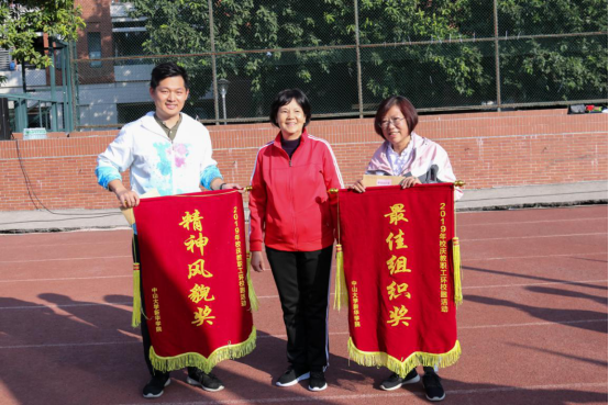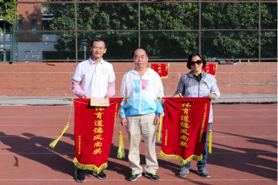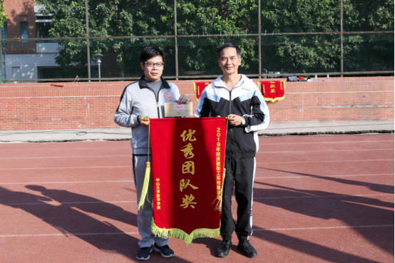 环校跑:杨卫华副校长(左)为教务处颁奖