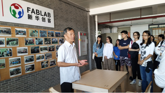 东莞校区Fab Lab创新中心胡铁君教授(左一)介绍Fab Lab创新中心