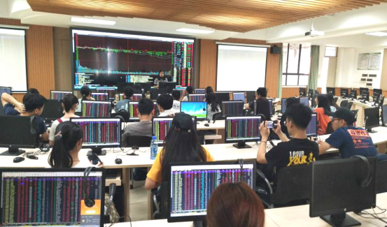 同学们在东莞校区金融衍生品实验室上机体验模拟炒股