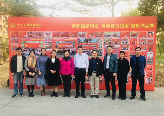 广东省委教育工委主题教育第三指导成员同学校党组织负责人代表观看了“不忘初心、牢记使命”主题教育系列展览之“我和国旗同框·青春告白祖国”摄影作品展并合影留念