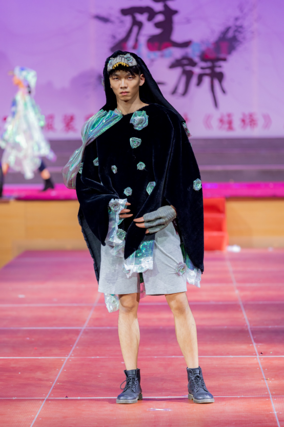 本届成果展首次增设“创意T”环节,即该部分的作品均来自设计师们天马行空的想象力,作品不限材质、不限风格、不限主题,进而充分激发学生的创意火花;此外,还特意面向全校师生招募志愿模特。模特均由设计师们面试确定,体态各异,涵盖“老中青幼”各年龄段,旨在打造一台属于“普通人”的创意秀,让服装设计和服饰艺术真正贴近每一个普通人的日常生活。学生模特们的肢体动作或是娇俏、或是优雅,突显了我校学子青春、活力的风采。观众们多次以热烈掌声,表示对学生设计者及学生模特们肯定与赞美。