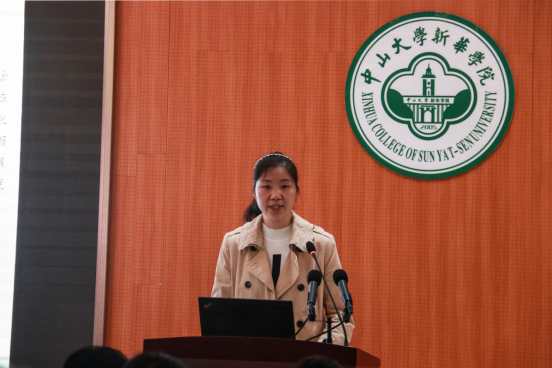 中国语言文学系教师王惠介绍了自己从2014年到2019年的科研之路及取得的成果。五年来,王老师共有结项及在研项目7项,其中教育部项目1项,省级项目2项,发表CSSCI 1篇,参与主编教材2部,主编著作1部。2019年,校级教改课题“应用型人才培养目标下的大学本科汉语言类课程教学改革研究”结项;逸仙班“逸仙班‘汉语表达与应用写作’课程教学改革”结项验收中;教育部课题“今训汇纂”结项验收中;参加广东省中国语言学会2018-2019年学术年会,小组宣读了论文《广东碑志材料词语校考》。王惠着重分享了自己这五年科研路的心得体会,她讲到,做科研要充分地相信自己,有想法就要大胆去尝试;对于科研选题,要能够结合地方特色,合理选题,如自己做的广东碑志方面的研究等,小题目深挖,辐射式拓展研究;要在科研过程中,不断接触吸收前沿知识及观点,提升自己的眼界,从而扩展选题的角度;要将教学与科研有效进行结合,不断提升授课质量。