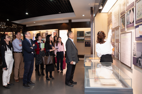 讲解员在向王庭槐校长一行讲解中国考试文化发展、演变的历程