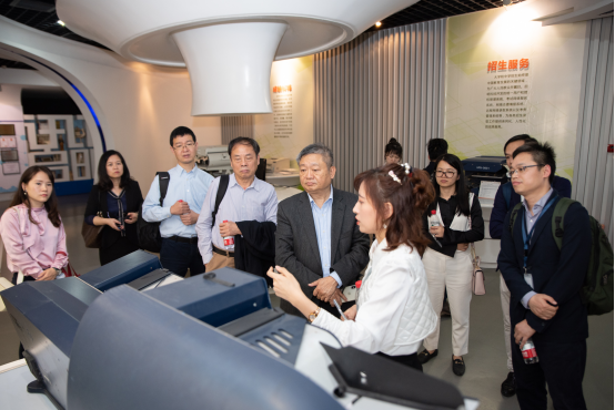 王庭槐校长一行首先参观了科大讯飞启明测试博物馆,了解从科举考试到现代化人工智能考试的历史沿革,科大讯飞从创立至今在智能测试领域所取得的各项科技进展与教育成果。