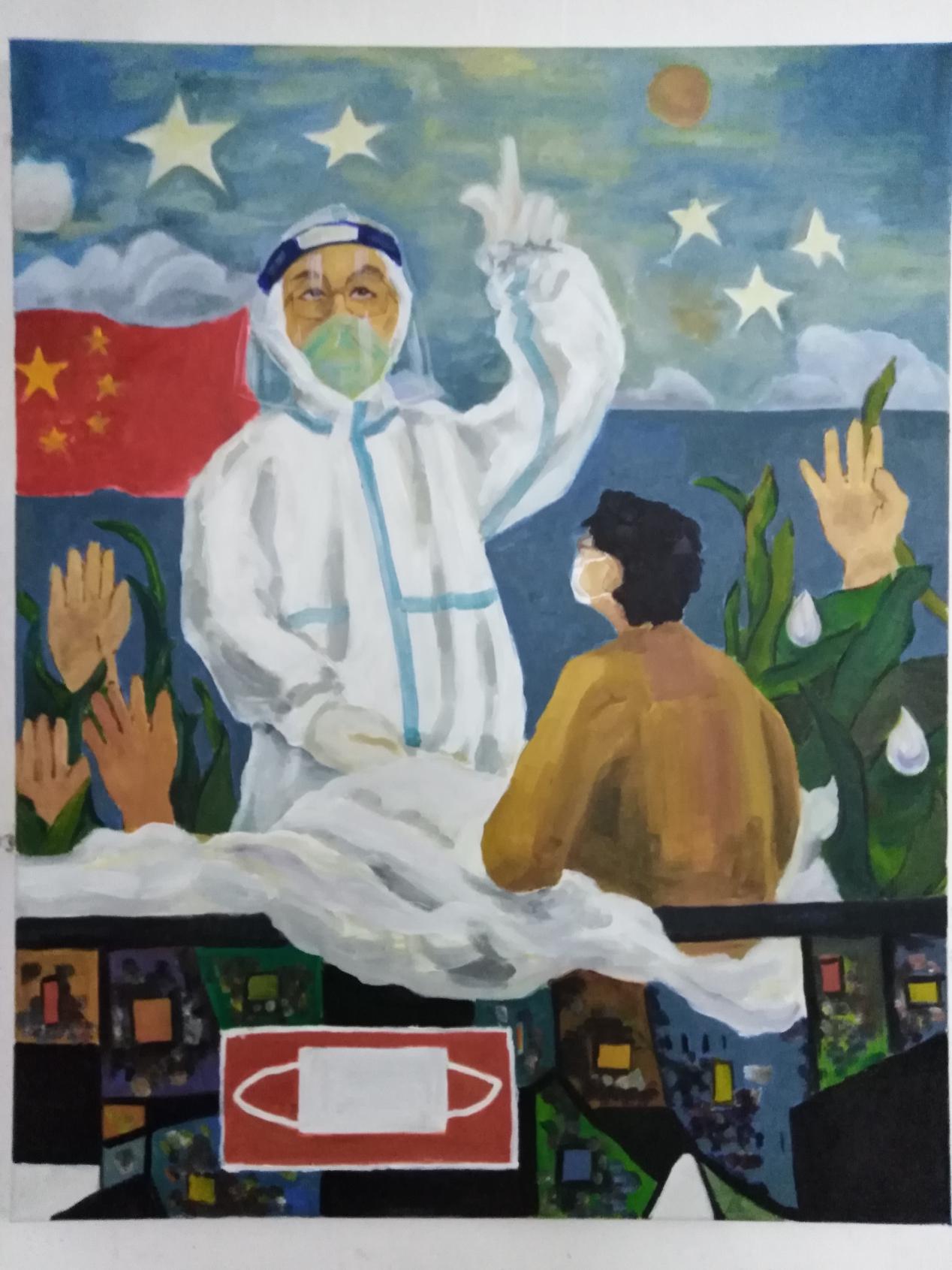 李兰娟院士不顾高龄,带领团队于武汉抗疫前线,发布重大抗病毒研究成果,以科研突破带来了全民抗疫的希望与信心。为此特向李兰娟院士致敬。作品《医者》是以李兰娟院士为原型为代表,表达了医者仁心的博爱之情,表达了对所有医护人员的感谢和敬爱之情。