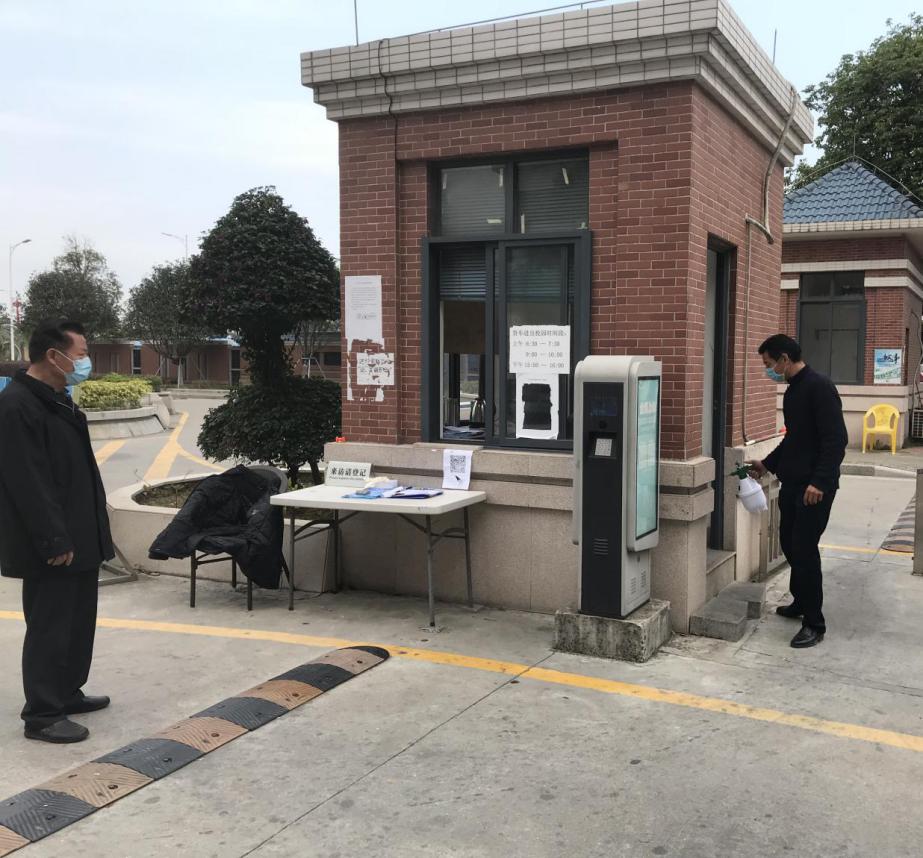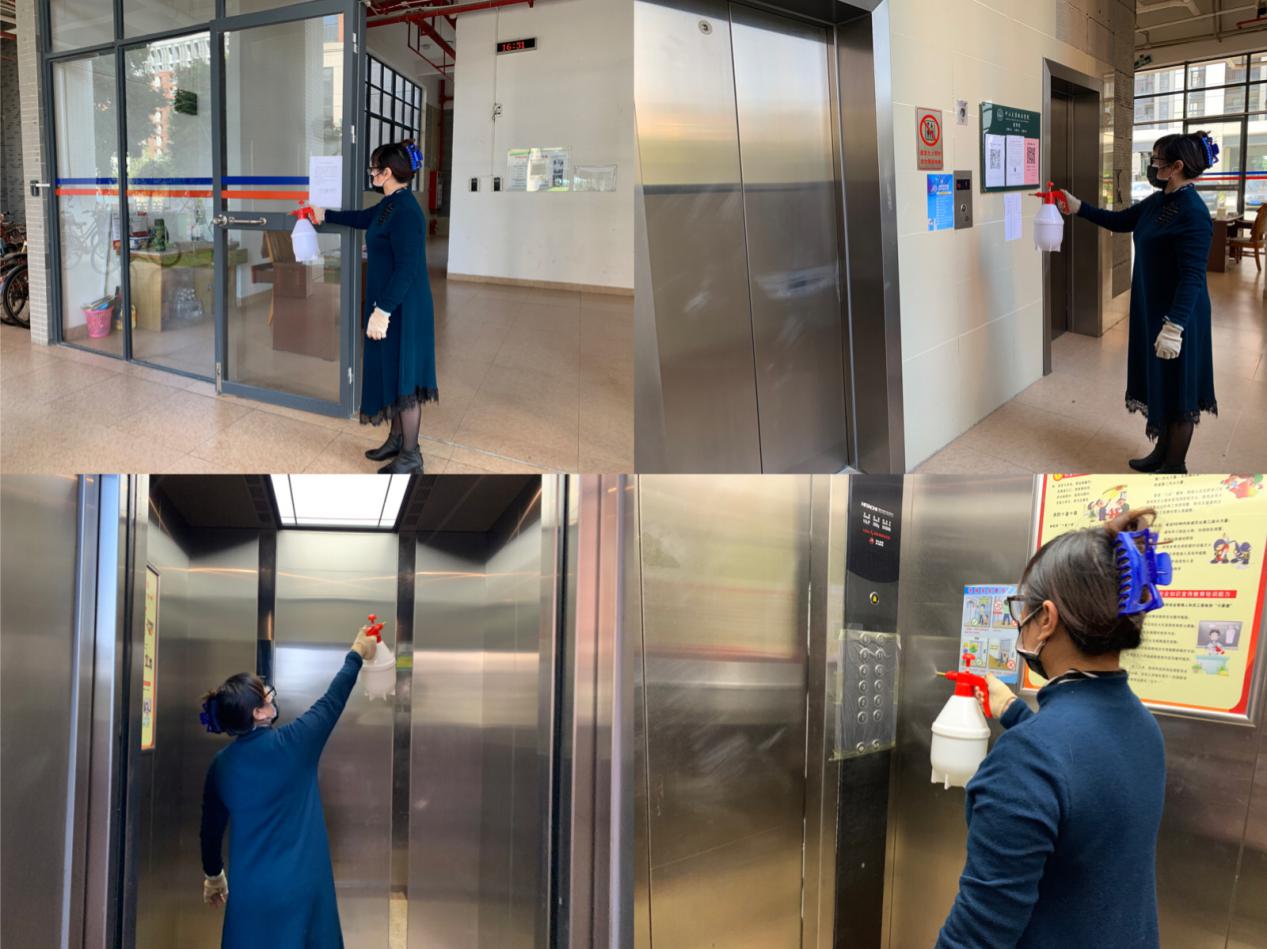 物业管理人员对校园进行全面消毒。