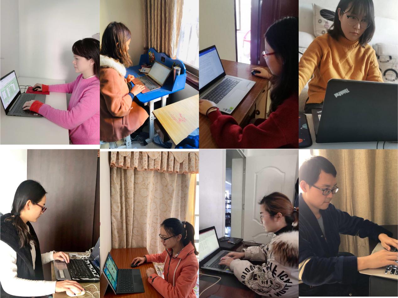 外国语学院党总支副书记欧衍伽同志(一排左一)带领辅导员队伍在线办公跟踪每一位学生健康动态。