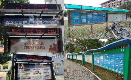 两校区校园设置新冠疫情防控宣传栏。