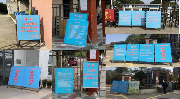 两校区校门口放置疫情防控告示牌、宣传栏,筑牢校园安全“第一道防线”。