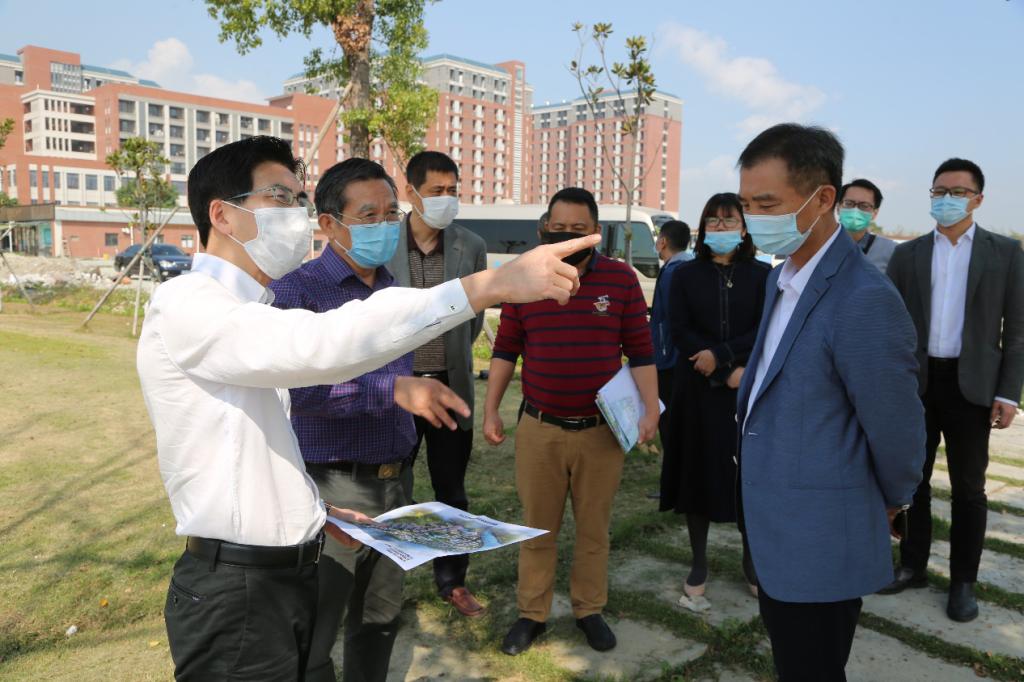 东莞市麻涌镇委书记黄桥法(左一)一行实地调研中大
