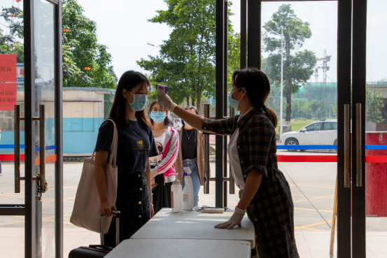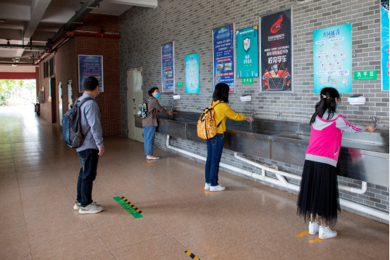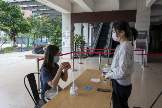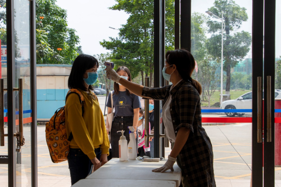 学院于4月16日上午,在广州和东莞两校区同时开展了学生返校疫情防控模拟演练,包括学生进入校门、进入宿舍、进入食堂就餐、进入教室上课、到医务室就诊五个演练场景。