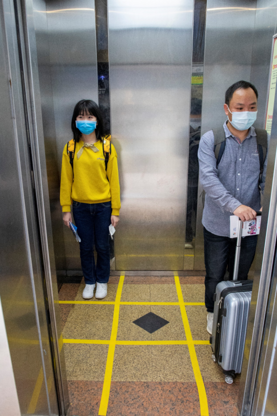 学生进入宿舍楼间隔至少1米依次排队接受宿管员体温测量