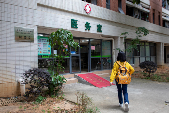 学生辅导员老师到宿舍了解情况并陪同学生到医务室就诊