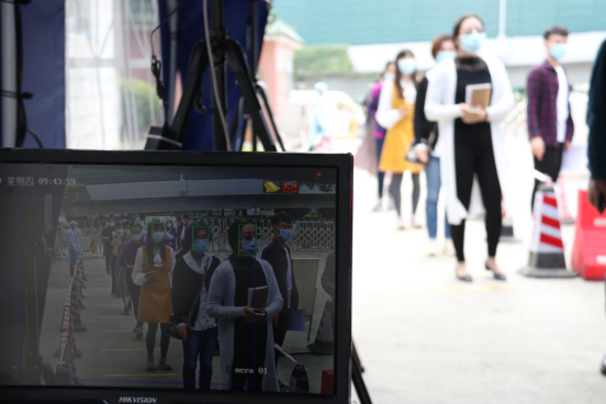 通过防疫测温热成像系统检测后洗手消毒、扫码登记