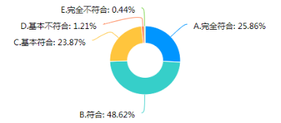 对“教师采取的网络教学形式和教学方法是否符合课堂教学需要”这一问题,回答“完全符合”的同学占25.86%,“符合”占48.62%,“基本符合”占23.87%,说明98.35%的同学认为教师采取的网络教学形式和教学方法符合课堂教学需要。