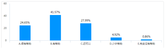 对“教师提供的学习方案对于提高学生的学习积极性有帮助”这一问题,回答“很有帮助”的同学占24.65%,“有帮助”占41.57%,“还可以”占以27.99%。
