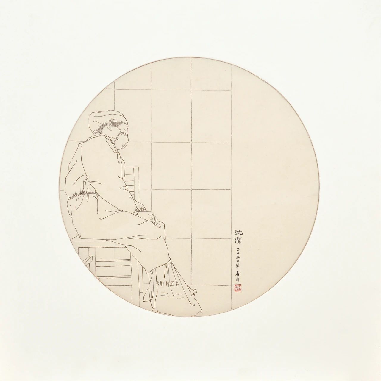 《深思》这幅作品,以钟南山院士为原形,体现抗疫过程中,中华民族的脊梁和担当。疫情暴发,他临危受命,出任国家卫健高级别组专家组组长。他每日的工作强度极高,在这幅作品中,钟南山院士正在为疫情而忧心,深切思考,体现他爱国爱人民的博大情怀。画中背景的树上禁果被偷吃,也让人类对自身的贪婪进行反省,懂得敬畏大自然,爱护大自然。