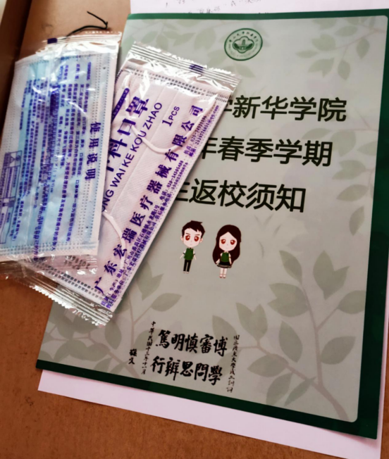 学院2020年春季学期学生返校须知》及口罩等防疫爱心包