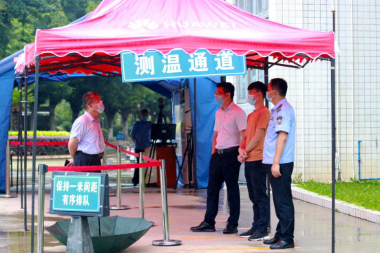 进校时严格按照学校的疫情防控要求开展测量体温等健康检查,住宿的学生按照规定线路返回宿舍。
