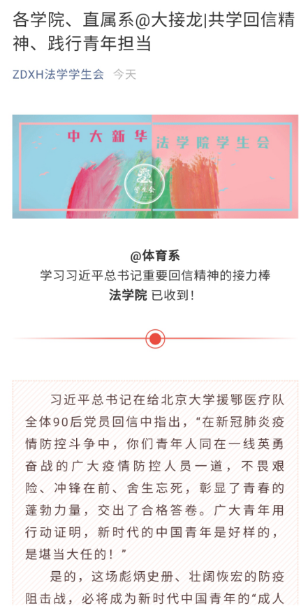 @大接龙|共学回信精神,同担复兴大任@法学团委,请接棒!