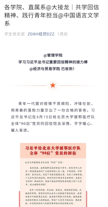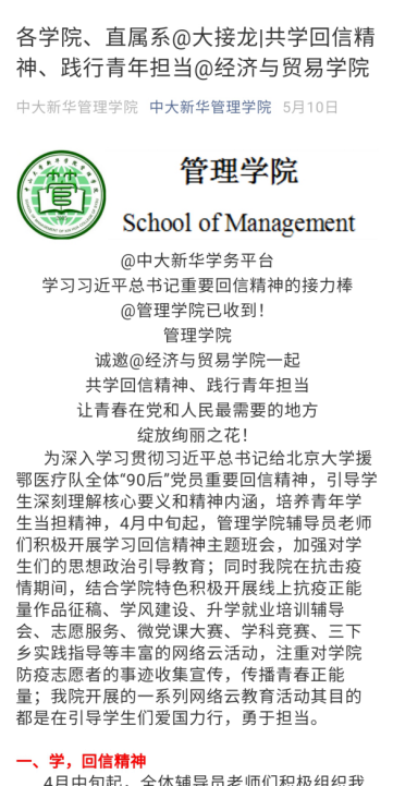 @大接龙|深入学习回信精神,勇挑重担不惧风雨@管院团委,请接棒!