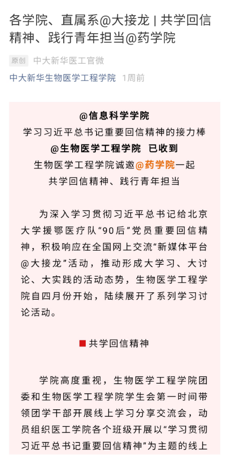 @大接龙|共学回信精神,同担复兴大任@医工团委,请接棒!