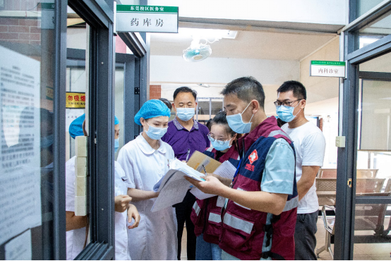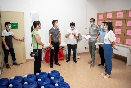 办公教学区(含防控物资)组检查学校疫情防控物资储备情况