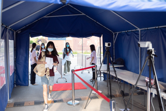 考生通过测温通道进入校园