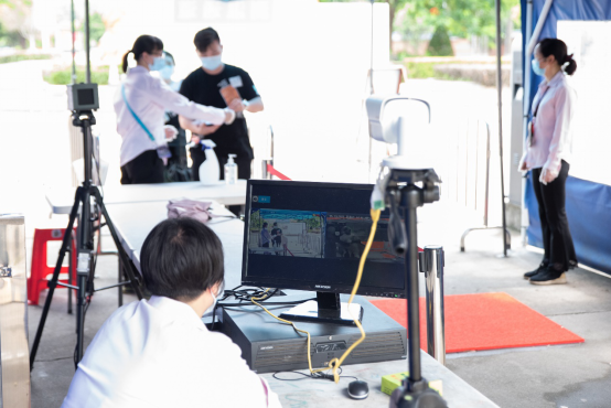 考生入校通过红外测温仪器检测体温