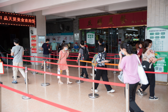 考生有序进入食堂就餐