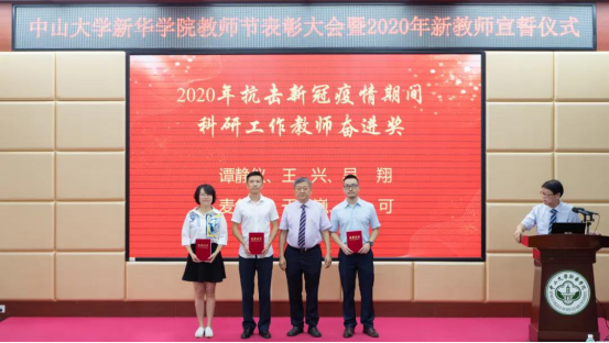 王庭槐校长为“2020年抗击新冠疫情期间科研工作教师奋进奖”获奖个人代表颁奖
