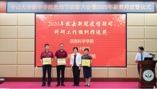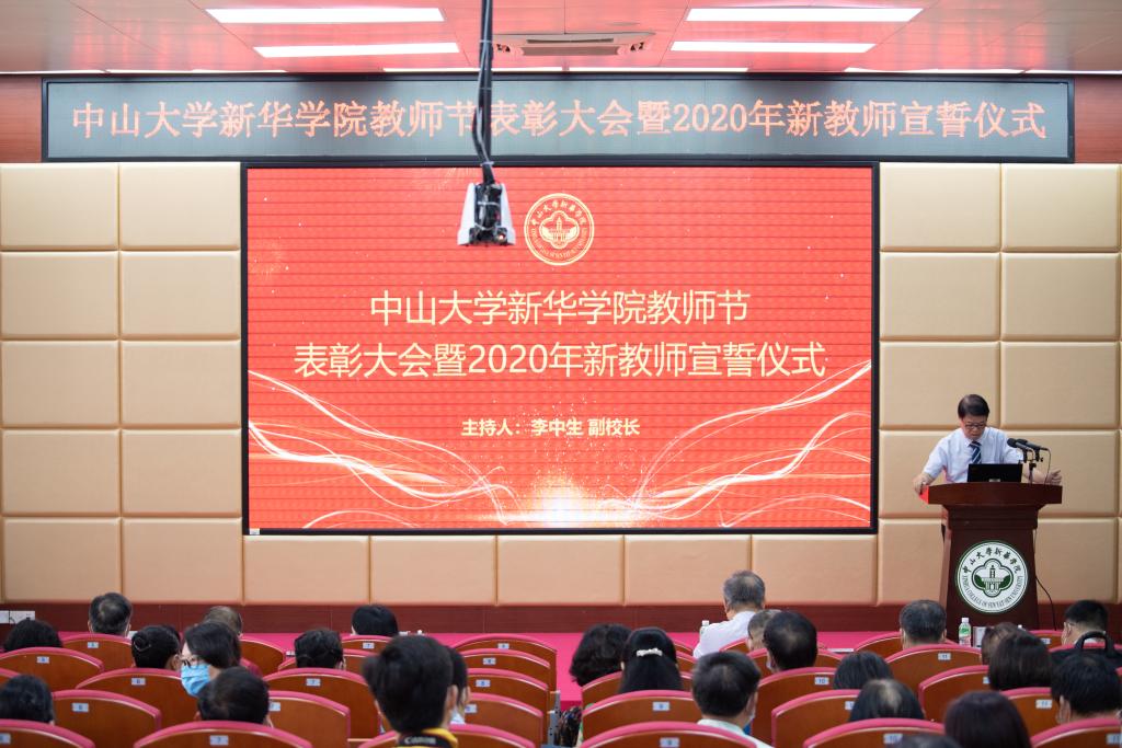 学院(以下简称“我校”)2020年教师节表彰大会暨新教师宣誓仪式在广州校区讲学厅举行。学校领导,校务委员会、教学指导委员会全体成员,教学督导室全体督导,各职能部门、院系党政正副职负责人,各院系首席教授及学科带头人、专业正副主任、入选学校“双百计划”教师等出席本次会议。李中生副校长主持会议。