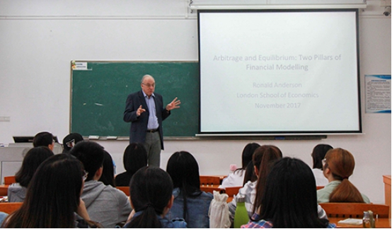 据悉,我校于2016年11月8日,敦聘世界经济学家、原伦敦政治经济学院金融与会计系主任Prof.Ron Anderson为我校经济与贸易学院金融工程专业首席教授、投资学专业学科带头人。受聘期间,Anderson教授经常在教学和学术研究方面对我校青年教师和学生给予诸多指导。在青年教师和学生心中,他是榜样,更是航灯,激励、感染着经贸系教师坚持不懈地追求卓越,从而推动经贸学院学术科研整体能力不断提升。