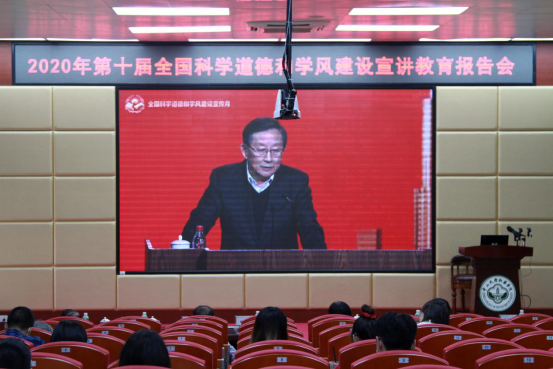 11月20日下午,由中国科协、教育部、科技部、中科院等单位共同主办的2020年全国科学道德和学风建设宣讲教育报告会暨宣传月启动仪式在北京举行。我校党政班子,各院系、相关职能部门主要负责人,“博士导研计划”、“百名骨干教师计划”人才培养对象,学生代表在广州校区讲学厅以网络视频同步直播的方式观看学习报告会。