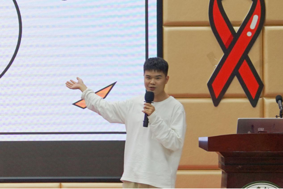 讲座伊始,黄泽灏提出“毒”“艾”不分家的主题,围绕“毒品的类型及危害”“碰见毒品常见四种方式”“如何拒绝毒品”进行演讲。他重点指出毒品会增强感染艾滋病的风险,并通过多组数据和例子力证二者的紧密关系,提醒大家要拒绝毒品,关爱自身健康,从我做起。