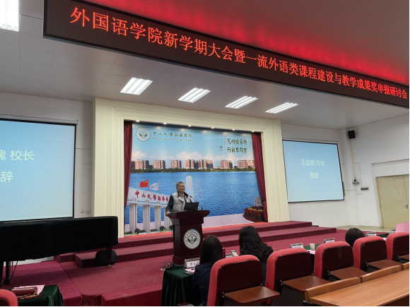 王庭槐校长为外国语学院新学期大会暨一流外语类课程建设与教学成果奖申报研讨会发表致辞