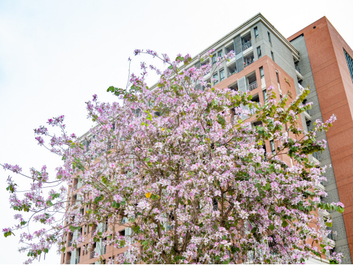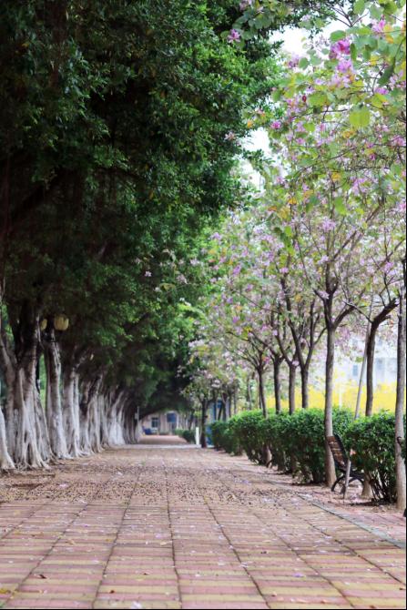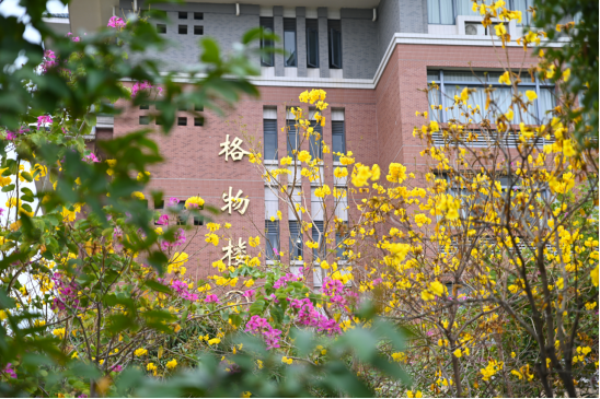 校园内,绿意盎然,繁华盛开。黄花风铃木迎春盛放,静待学子归来。