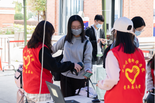 同学们也陆续返校,通过红外测温、检查“iXH健康码”……在老师、志愿者和同学们的通力配合下,返校“流水线”通畅运行。