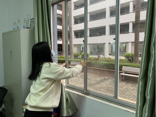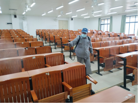 各部门和院系也按照学校防疫要求进行晨检自查,开窗通风、消毒清洁,开始新学期的工作。